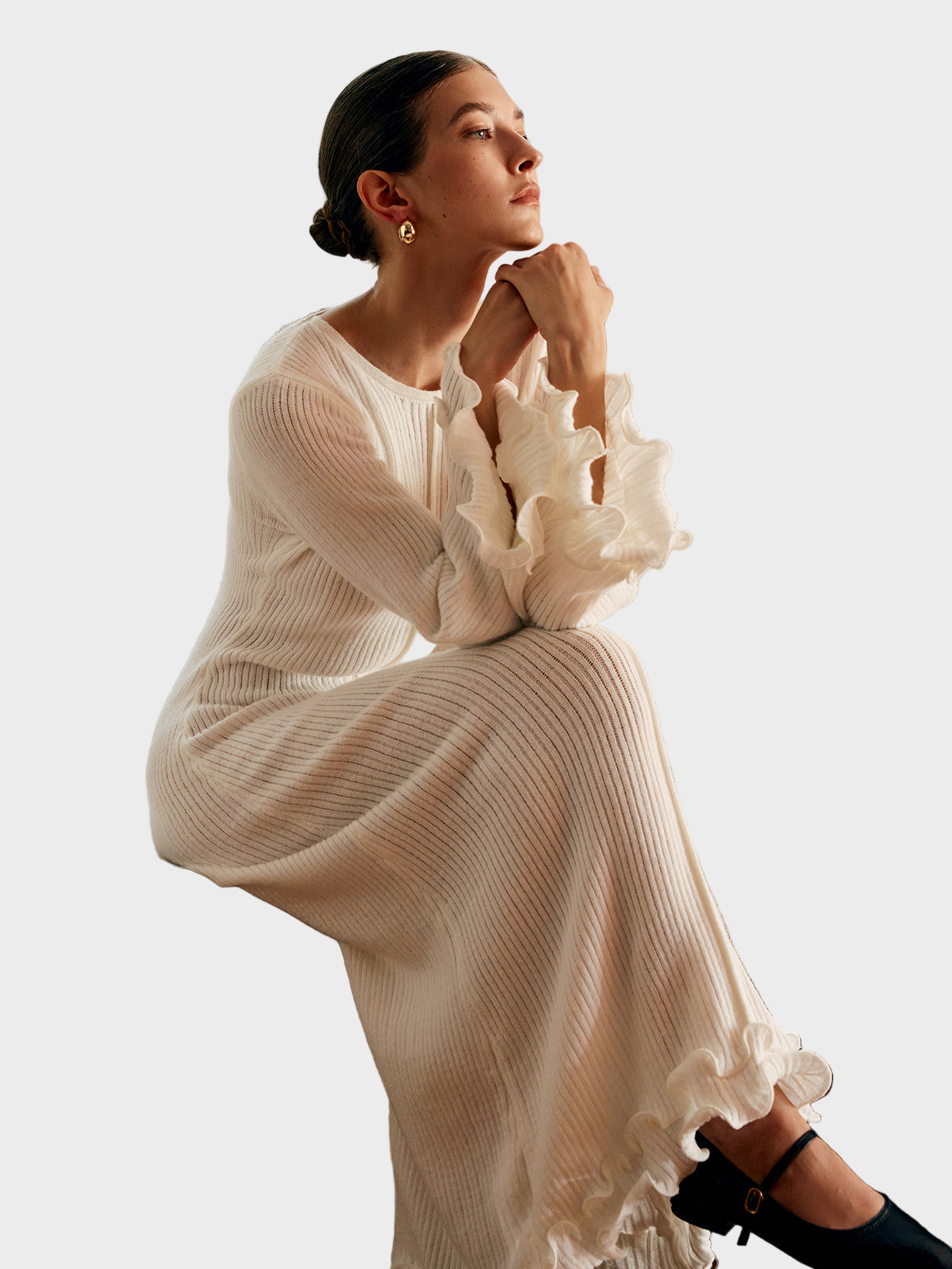 Adela - Pletena haljina s volanima i vezicom