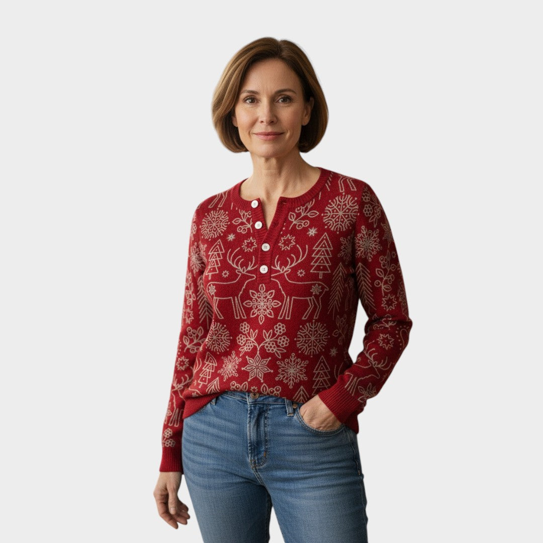 Ovaj džemper donosi veselu božićnu vibru svojim svježim ružičastim i zelenim printom bora. Kombinacija mekih boja i suptilnih pruga daje moderan zaokret klasičnom blagdanskom izgledu. Izrađen od tople, pletene mješavine pamuka za vrhunsku udobnost.