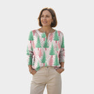 El suéter aporta un alegre ambiente navideño con su fresco estampado de pinos rosas y verdes. La combinación de colores suaves y sutiles rayas da un giro moderno al clásico look navideño. Confeccionado en una cálida mezcla de algodón tejido para ofrecer la máxima comodidad.
