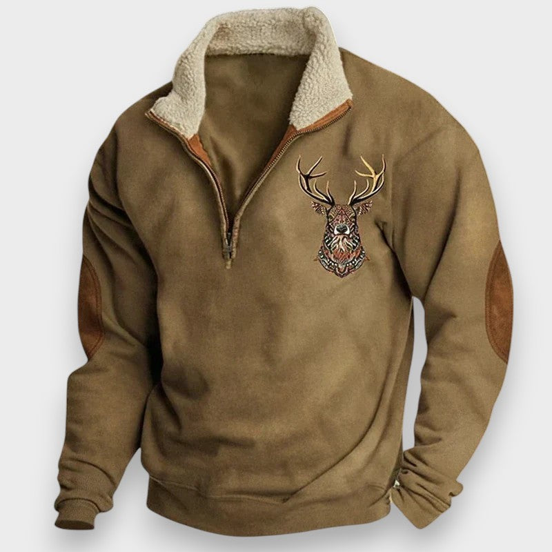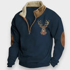 Pulover s jelena kombinira udobnost i karakter u robusnom i elegantnom izgledu. S detaljnim dizajnom jelena na prsima i hrabrom završnom obradom, ovaj pulover je idealan za muškarce koji vole život na otvorenom, ali i za one koji žele moderan izgled. Visoki zip ovratnik pruža dodatnu toplinu i ležeran izgled.