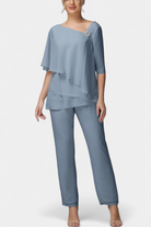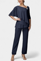 Sofisticirana elegancija s opuštenom strukturom. Lana set kombinira bezrukavni top s širokim izrezom i hlače visokog struka s lepršavim nogavicama, stvarajući rafiniranu i udobnu siluetu. Njegov prozračan i lagan materijal čini ga idealnom opcijom za suptilan i samouvjeren izgled.