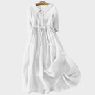 Duga haljina s kratkim rukavima spaja opušteni karakter košulje s romantičnim volumenom suknje. Ovratnik s finim obrubom i red gumba daju profinjen izgled, dok vezica u struku lako prilagođava pristajanje. Nabrana suknja stvara fluidan pad koji lijepo prati svaki korak. Izrađena je od laganog, prozračnog materijala ugodnog na koži, pa je idealna za šetnje gradom, izlete i sve opuštene prigode.