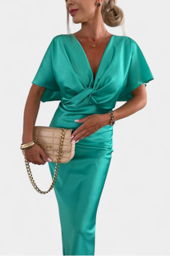 Tatjana Duga Haljina s Draperijom Sprijeda i Preklopljenim Izrezom