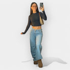 Ove traperice nude savršenu ravnotežu između stila i udobnosti, s niskim strukom i laskavim krojem. Idealne su za svakodnevne kombinacije modernog karaktera.