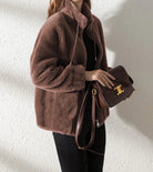 Elegantni, bezvremenski stil — lagano oversize kroj, visoki ovratnik i pažljivo izrađeni detalji za profinjen, ležeran izgled.
