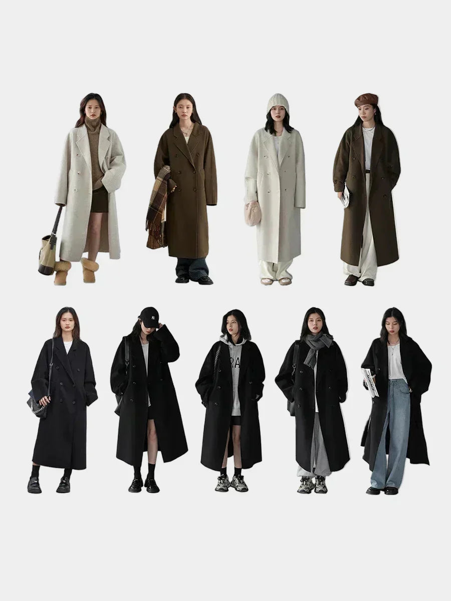 Elegantni dvostruki vuneni kaput s prednjom kopčom i sofisticiranim padajem od Teresa