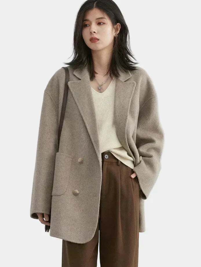 Elegantan dvoslojni vuneni kaput s dvostrukim kopčanjem i udobnim krojem za sofisticiran i opušten stil