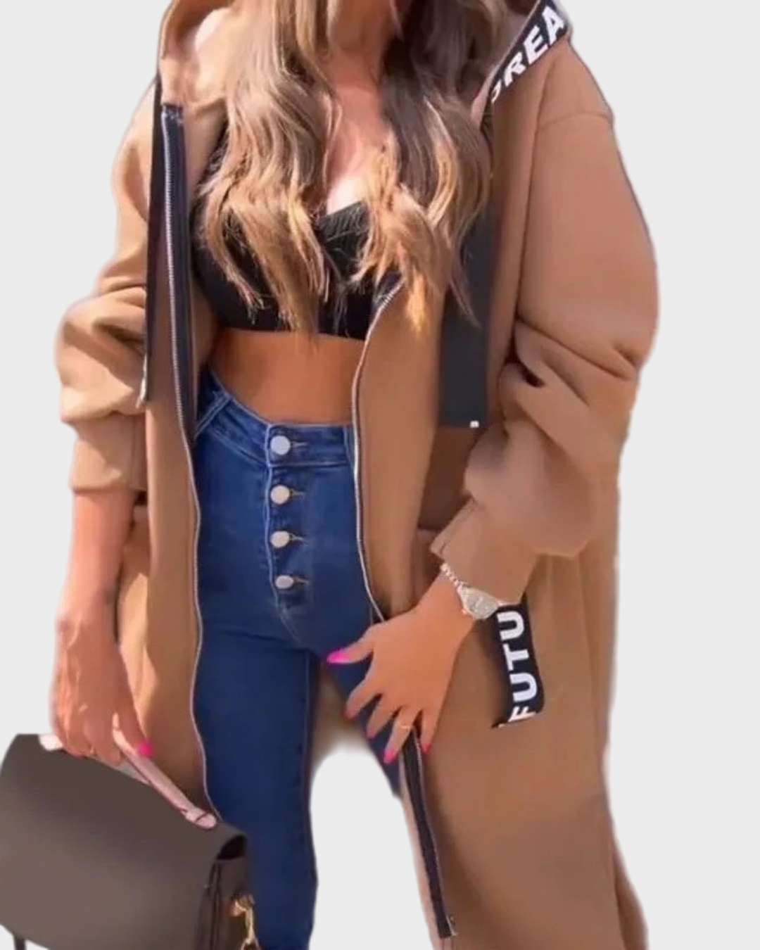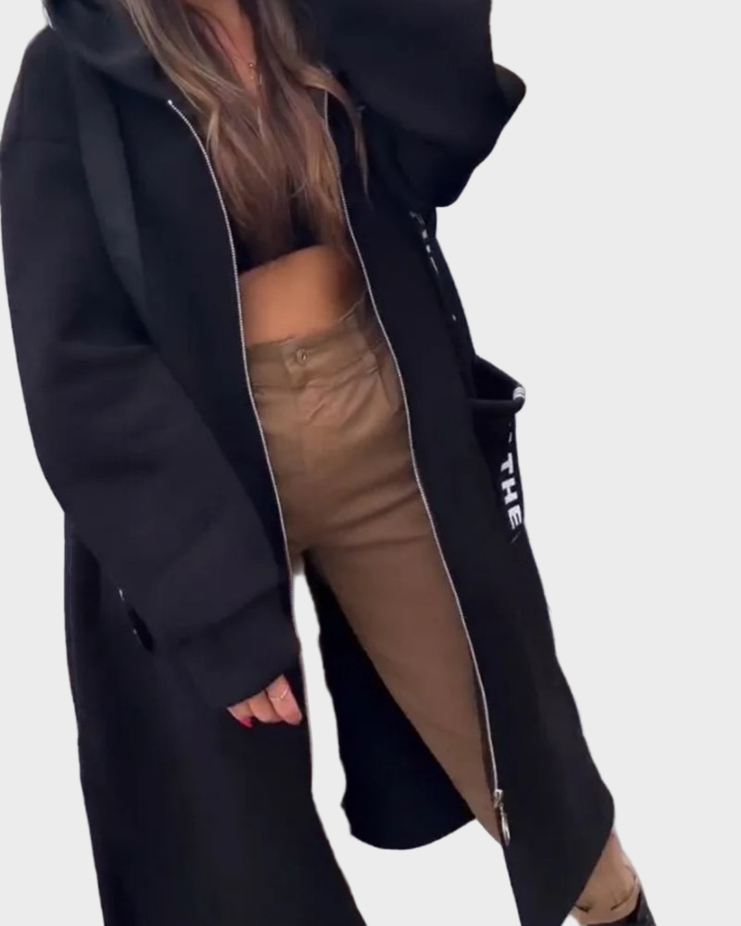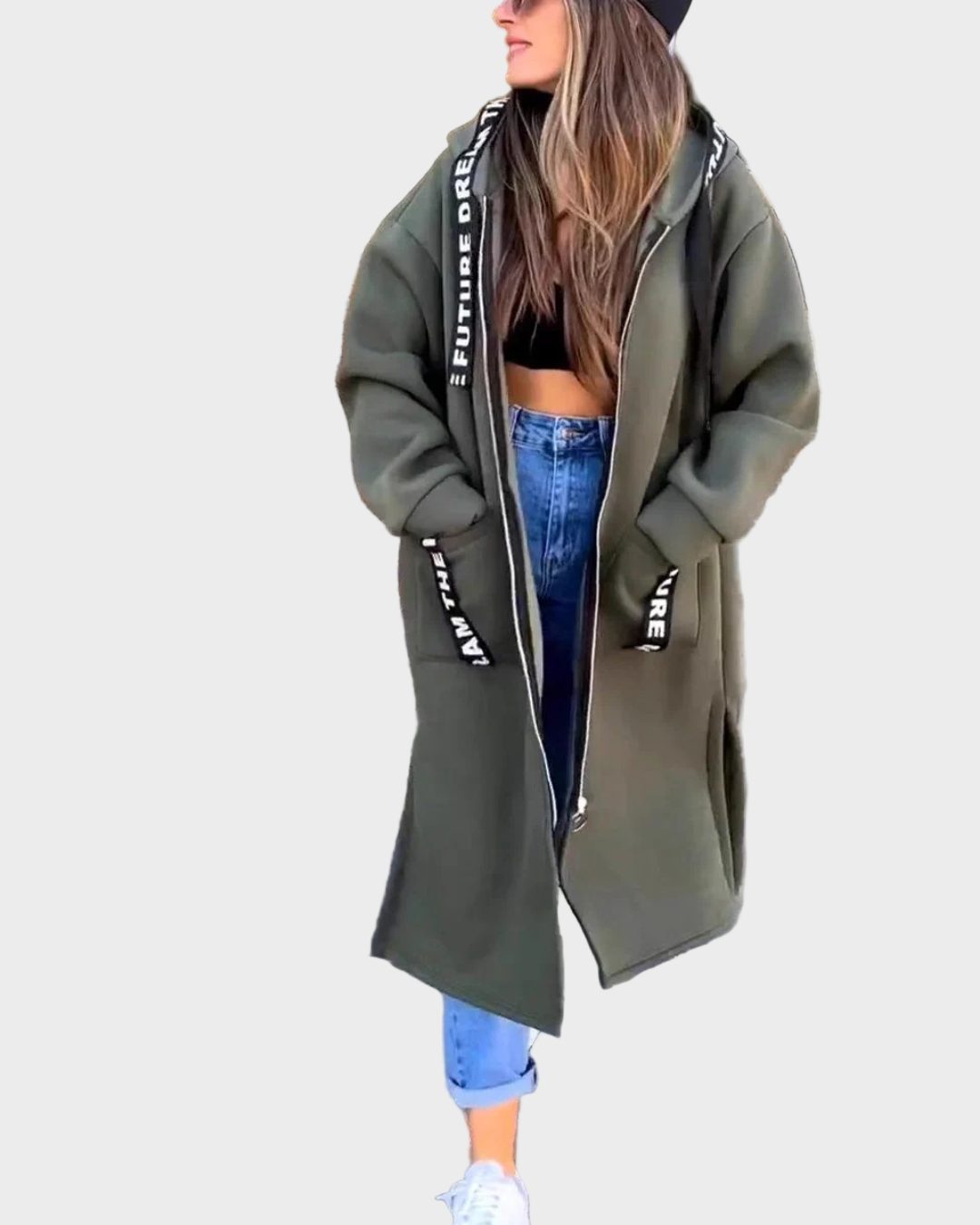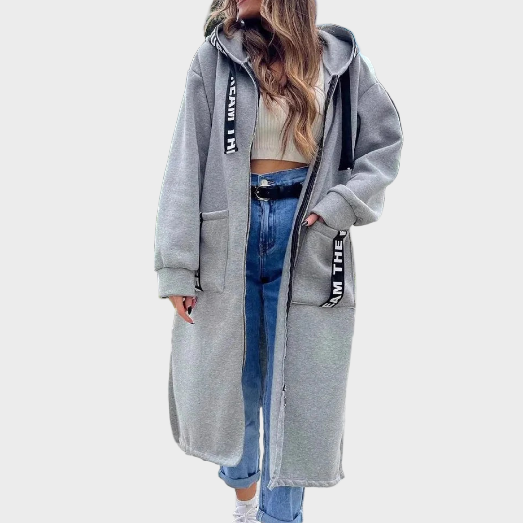 Dug dizajn s kapuljačom: pruža dodatnu toplinu i moderan, laskav izgled.