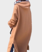 Dukserica Roza spaja udobnost ležernog komada s elegancijom dugog i suvremenog dizajna. Produženi kroj ispod koljena donosi moderan i svestran izgled, idealan za slojevito nošenje ili kao glavni komad kombinacije. Savršena za one koji traže opušten izgled bez odricanja od stila.