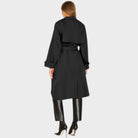 Klasičan dvoredni kroj s remenom u struku, ramenim epoletama i remenčićima na manšetama. Čistih linija i profinjenih detalja, leprša pri hodu i lako se stilizira uz poslovne i casual kombinacije. Dužina ispod koljena daje dozu elegancije, a kvalitetna tkanina lijepo drži formu sezonama.