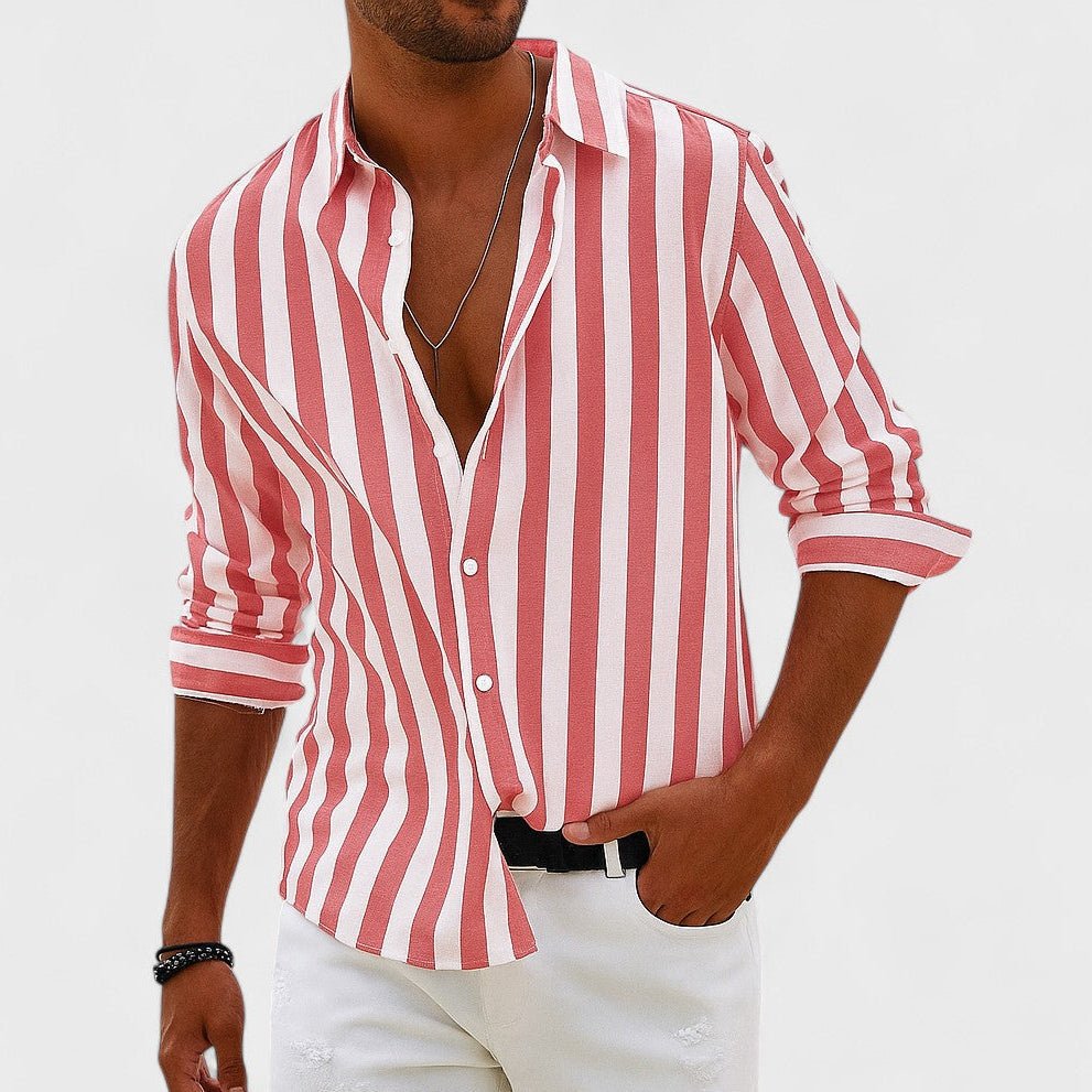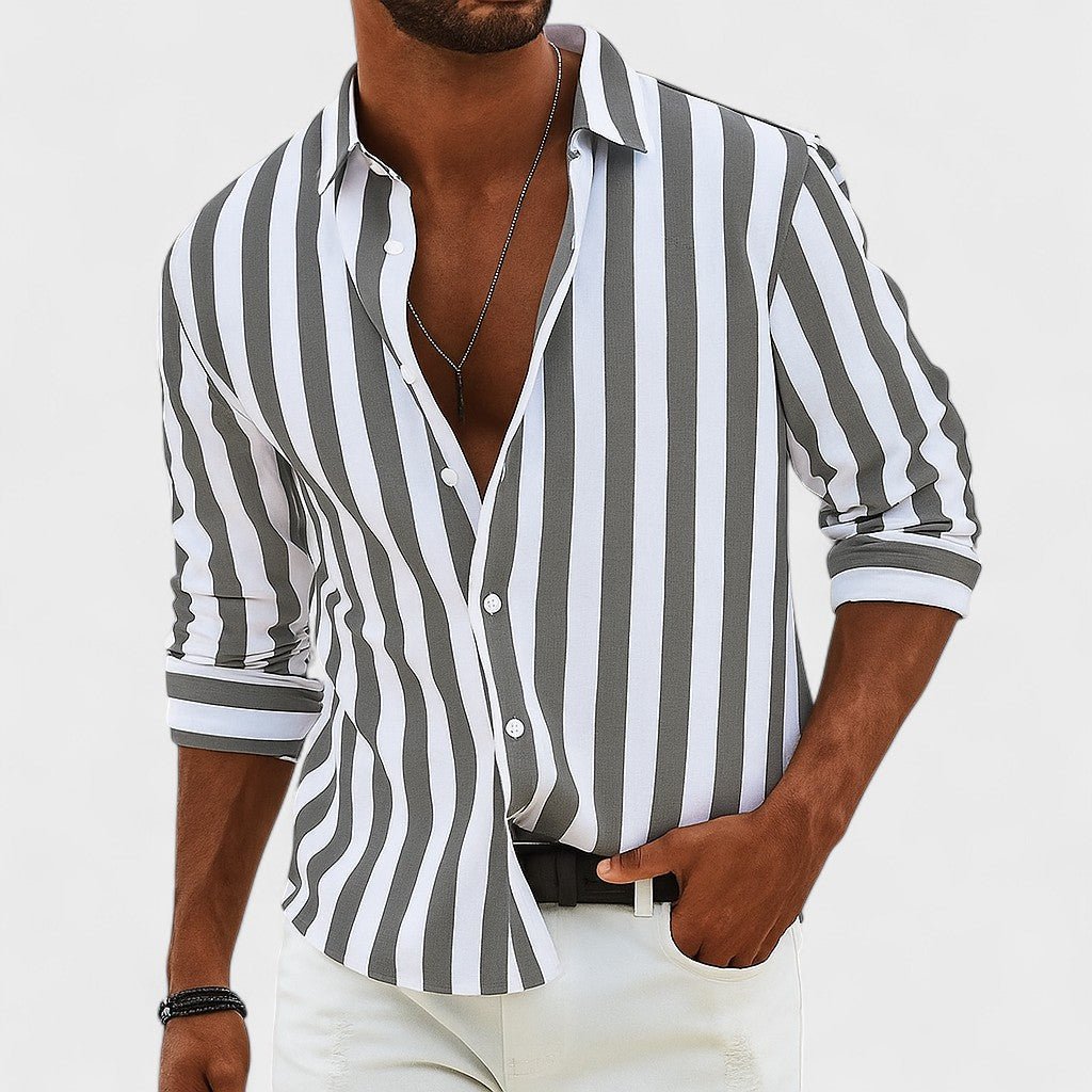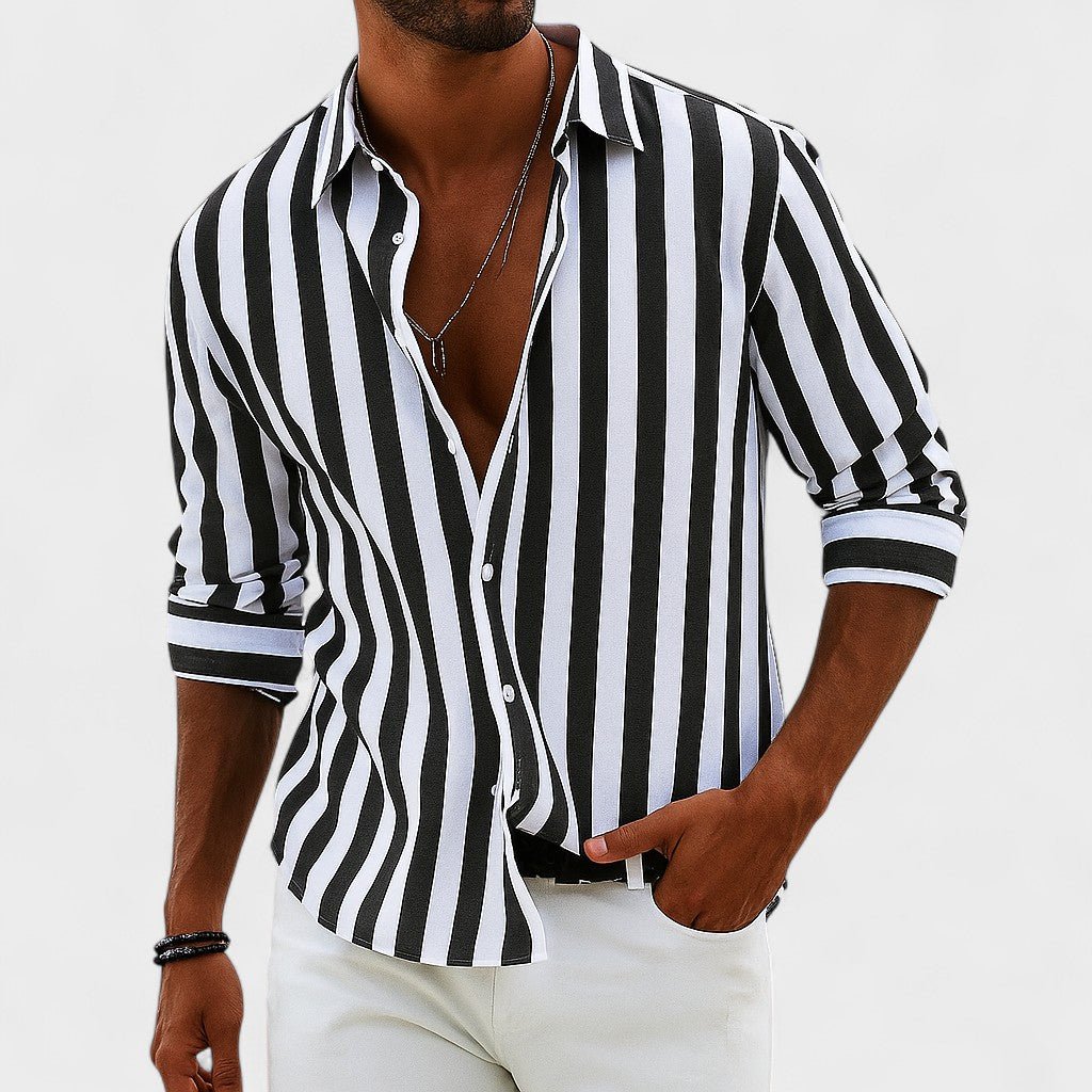 S klasičnim dizajnom u novom izdanju, ova košulja s dugim rukavima i okomitim prugama savršen je izbor za muškarce koji cijene elegantan, svjež i moderan izgled. Izrađena je od laganog i prozračnog materijala te je odlična za ležerne i polu-formalne prilike. Neizostavan je dio garderobe za toplije dane s daškom elegancije.