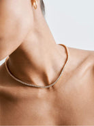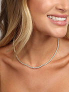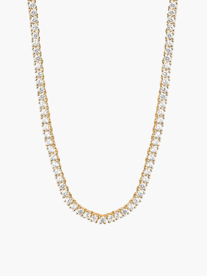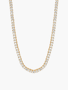 Dodajte dozu luksuza s Rivière ogrlicom, obloženom 14k zlatom. Ovaj izvanredni komad nakita ima stalnu liniju sjajnih kamenčića, stvarajući prekrasan i elegantan efekt. Savršeno za svaku priliku, pruža klasičan i otmjen akcent koji će unaprijediti vaš stil.