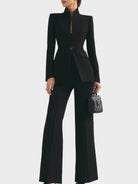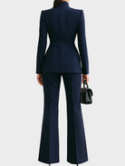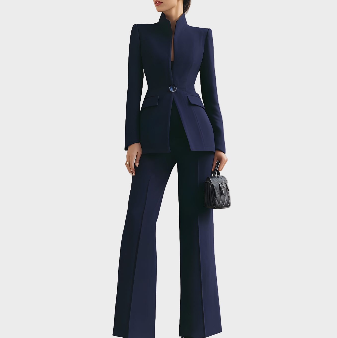 Ovaj elegantni set sakoa i hlača redefinira bezvremensku sofisticiranost s modernim prizvukom. Sako kroja nudi strukturiran, ali elegantan kroj, dok hlače kroja pružaju cjelodnevnu udobnost i stil. Dizajniran da uravnoteži profesionalnost i eleganciju, savršen je izbor za posao ili elegantne prigode.