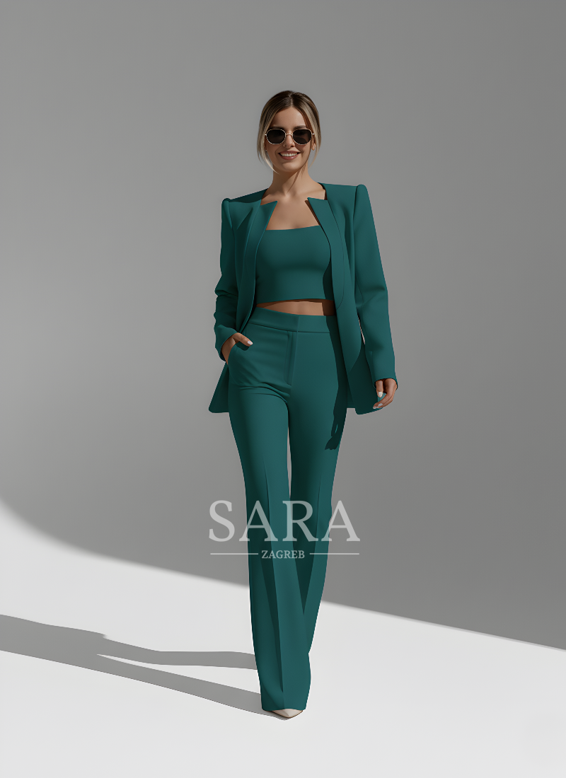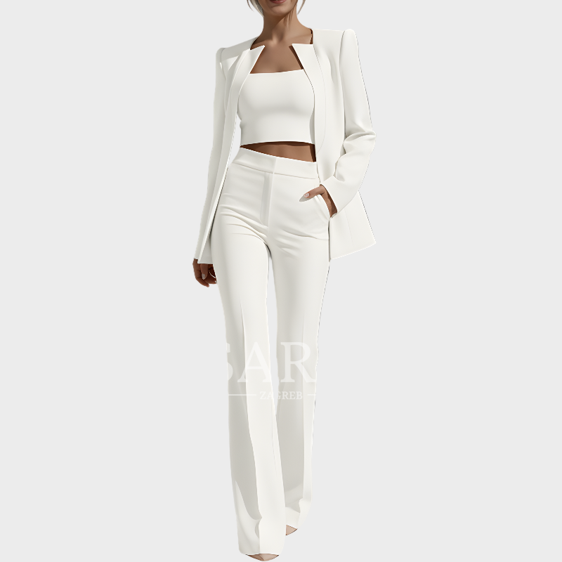 Ovaj sofisticirani set uključuje moderni blazer, elegantnu bluzu i udobne hlače – idealno za suočavanje s danom sa stilom. Bilo da se radi o uredu ili opuštenoj večeri, set Selina spaja maksimalnu udobnost s jedinstvenim stilom.