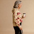 Ova pletenina ne grebe i ne iritira kožu zahvaljujući mekanoj, prozračnoj mješavini koja prija koži. Grije vas bez pregrijavanja, idealno za promjenjivo jesensko vrijeme. Materijal zadržava oblik – bez rastezanja ili opuštanja nakon nekoliko nošenja. Šareni, skandinavski nadahnuti uzorak dodaje razigran, a ipak moderan dodir svakom outfitu. Uparite ga s trapericama ili kratkim hlačama za ležeran look, ili ga podignite uz suknju i čizme. Kapuljača pruža dodatnu toplinu i opuštenu atmosferu.