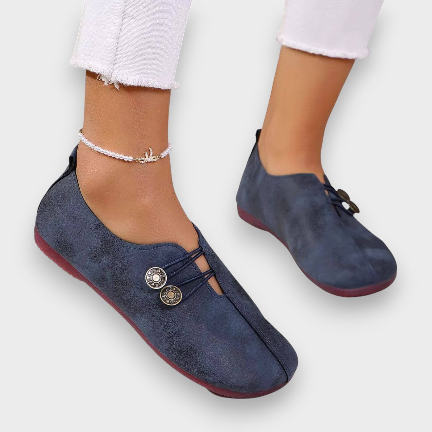- Sigurno se prilagođava bez stezanja: Elastično dugme koje drži stopalo na mjestu bez trljanja.