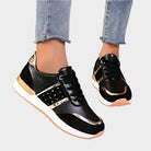 Otkrijte apsolutnu eleganciju s ovim crnim sportskim cipelama s zlatnim detaljima. Idealne za svakodnevne stilske kombinacije, kombiniraju udobnost, stabilnost i jedinstveni karakter.