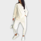 Stilski troslojni komplet: Uključuje pulover, trenirku i višenamjensku pletenu jaknu za beskrajne mogućnosti kombiniranja.