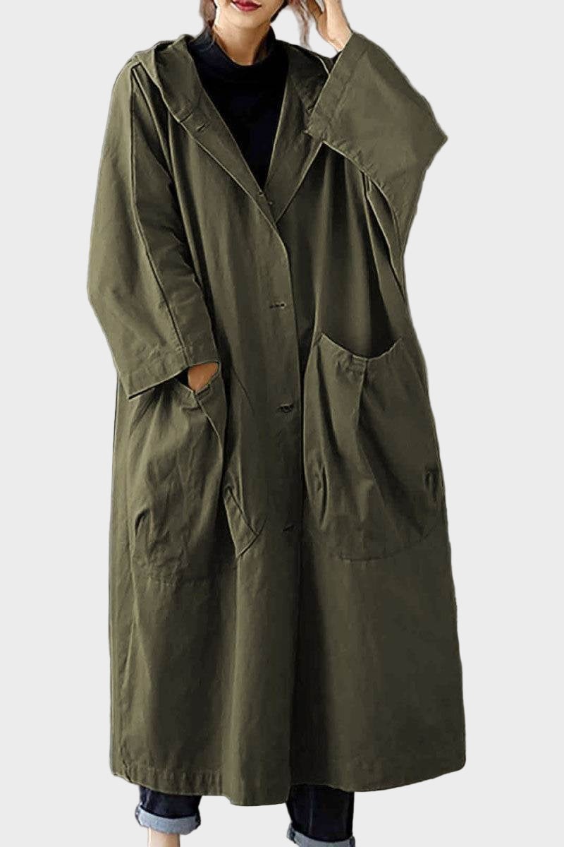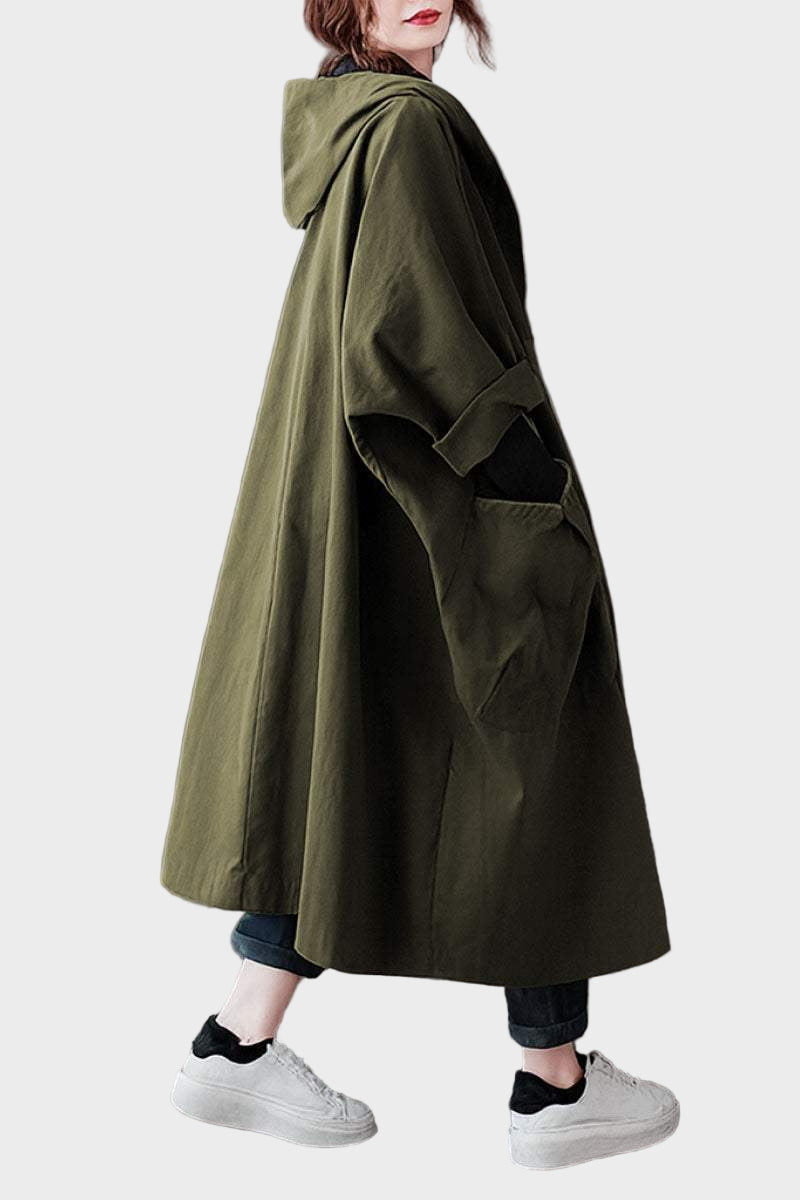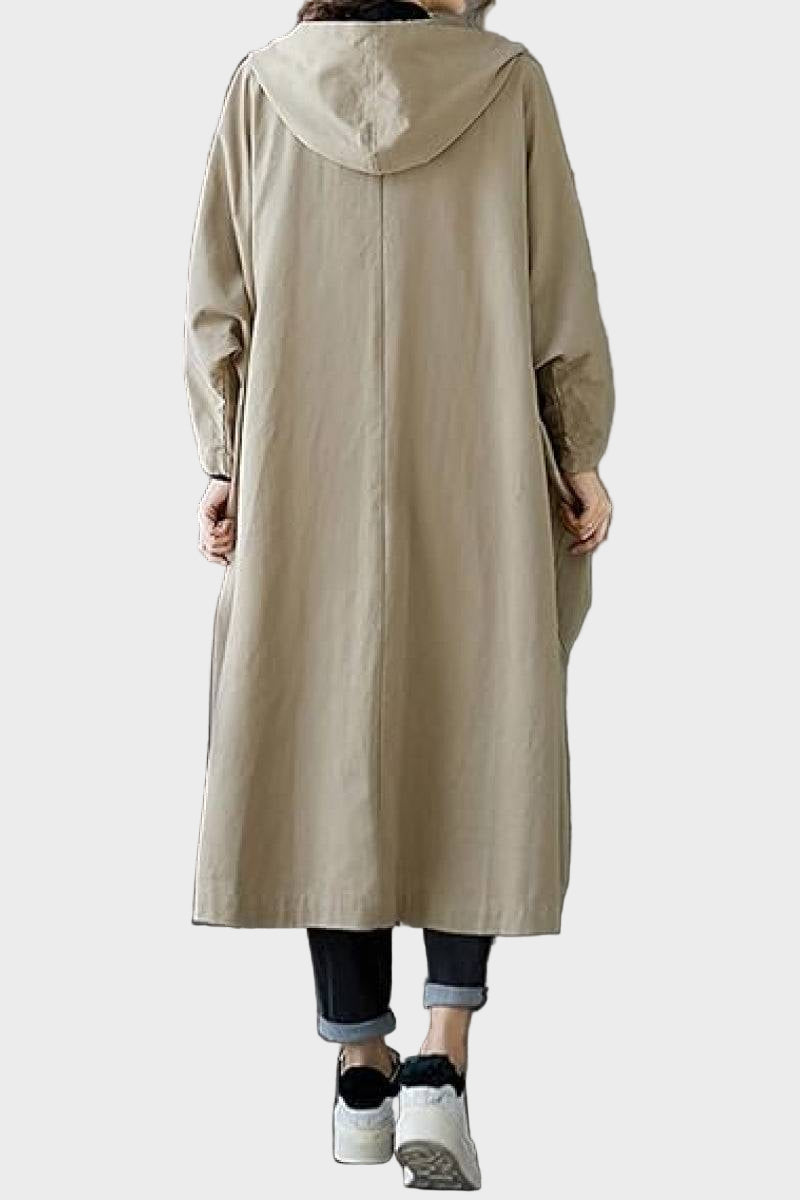 Ovaj kabanica univerzalne veličine, otporna na vodu, lagana je, praktična i namjerno oversized—savršeni prijelazni sloj za sve sezone.