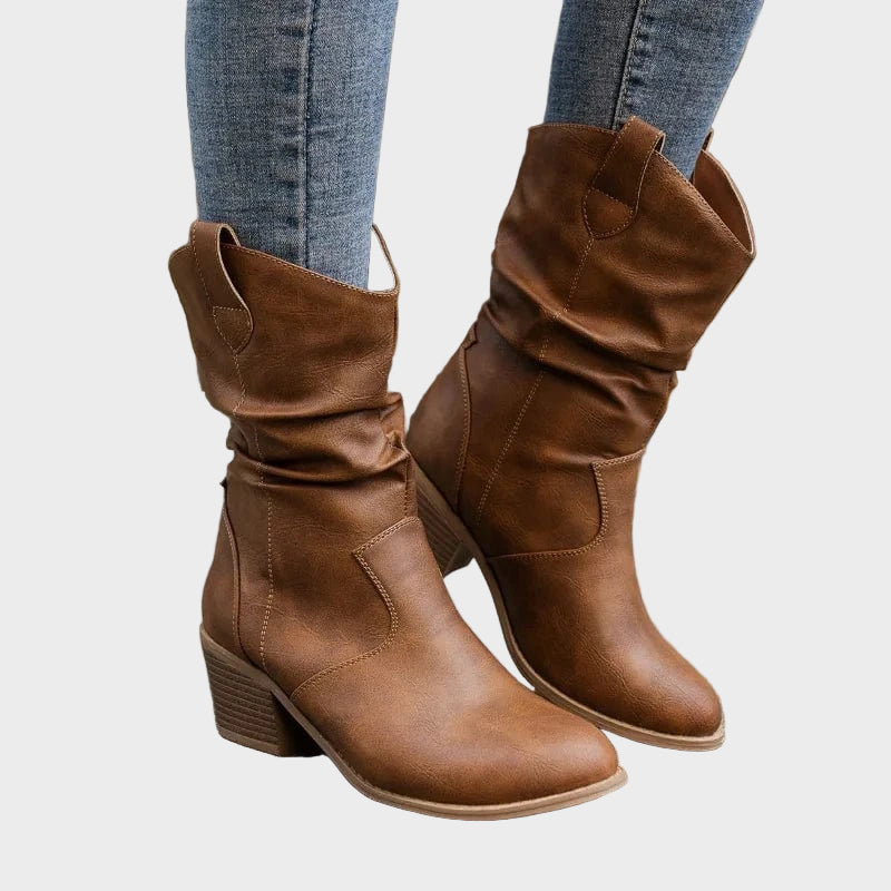 Doživite savršen spoj rustikalnog stila i udobnosti s našim Silvana kožnim čizmama. Ležeran, opušteni gornji dio dodaje dašak stila, dok čvrsta blok peta pruža stabilnost za cjelodnevno nošenje. Ove su čizme savršene za svaku avanturu, što ih čini obaveznim komadom za svaku kaubojku.