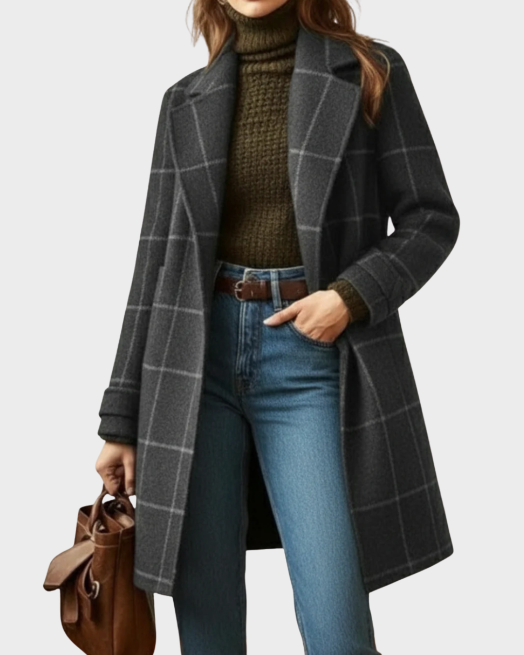 - Bezvremenska karirana elegancija: Rafinirani karirani dizajn uparen sa strukturiranim reverom stvara trenutno uglađen i sofisticiran izgled.