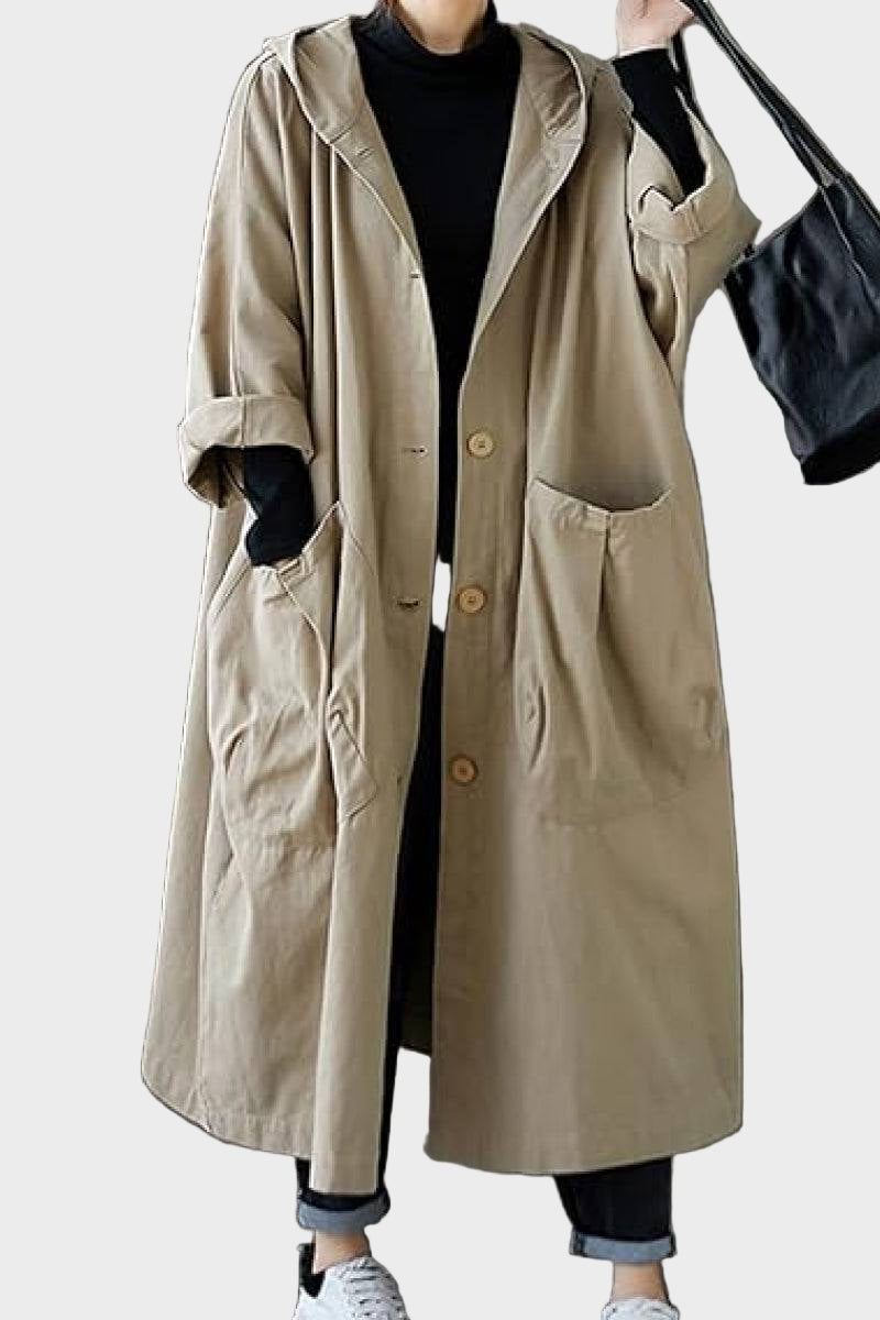 Ovaj kabanica univerzalne veličine, otporna na vodu, lagana je, praktična i namjerno oversized—savršeni prijelazni sloj za sve sezone.