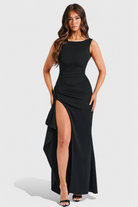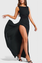 Ivana Haljina od Satena s Otvorenim Leđima i Velikim Razrezom