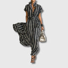Ova maxi haljina od laganog šifona dizajnirana je za žene koje žele istaknuti svoju profinjenost i osjećati se samouvjereno. Prozirna lakoća tkanine u kombinaciji s pojasom u struku stvara ženstvenu siluetu, dok prugasti uzorak unosi modernu dinamiku u vaš izgled.